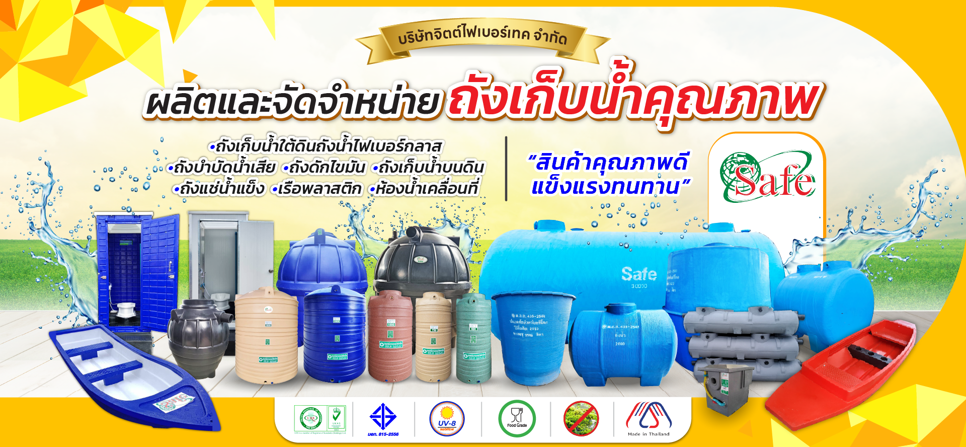 ถังน้ำพีอี โรงงานผลิตงานพีอีและไฟเบอร์กลาส ถังน้ำ และถังบำบัดน้ำเสียขนาดใหญ่ในโรงงานอุตสาหกรรม ได้มาตรฐาน รับผลิตงานพีอีและไฟเบอร์กลาสตามแบบที่ลูกค้าต้องการ ต้องที่ “บริษัท จิตต์ ไฟเบอร์ เทค จำกัด” ✅ รับผลิตและจำหน่าย ถังใส่น้ำ ถังเก็บน้ำพลาสติก แท้งค์น้ำพลาสติก ✅ ถังไฟเบอร์กลาส ถังเก็บน้ำบนดิน และใต้ดิน ถัง PE ✅ รับผลิตและจำหน่าย ถังบำบัดน้ำเสีย ✅ รับผลิตและจำหน่าย ห้องน้ำเคลื่อนที่ ✅ รับผลิตและจำหน่าย เรือพีอีและเรือไฟเบอร์กลาส สั่งผลิตได้ตามขนาดที่ลูกค้าต้องการ มี มอก. คุณภาพดี รับประกันคุณภาพ มาตรฐานอุตสาหกรรม บริการจัดส่งทั่วไทย ไม่ต้องโอนไม่ต้องมัดจำ มีบริการเก็บเงินปลายทาง กันยา พาช้อป โปรโมชั่น ถังเก็บน้ำ ราคาพิเศษ สินค้าของเรา ถังเก็บน้ำบนดิน ดูข้อมูลเพิ่มเติม ถังเก็บน้ำใต้ดิน ดูข้อมูลเพิ่มเติม ถังบำบัดน้ำเสีย ดูข้อมูลเพิ่มเติม ถังน้ำไฟเบอร์กลาส ดูข้อมูลเพิ่มเติม ถังดักไขมัน ดูข้อมูลเพิ่มเติม เรือพลาสติก ดูข้อมูลเพิ่มเติม ถังแช่น้ำแข็ง ดูข้อมูลเพิ่มเติม ห้องน้ำเคลื่อนที่ ดูข้อมูลเพิ่มเติม ถังน้ำใต้บันได ดูข้อมูลเพิ่มเติม ถังน้ำท้ายกระบะ ดูข้อมูลเพิ่มเติม พื้นที่ให้บริการ ให้บริการในพื้นที่ทั่วประเทศ ผลงานของเรา